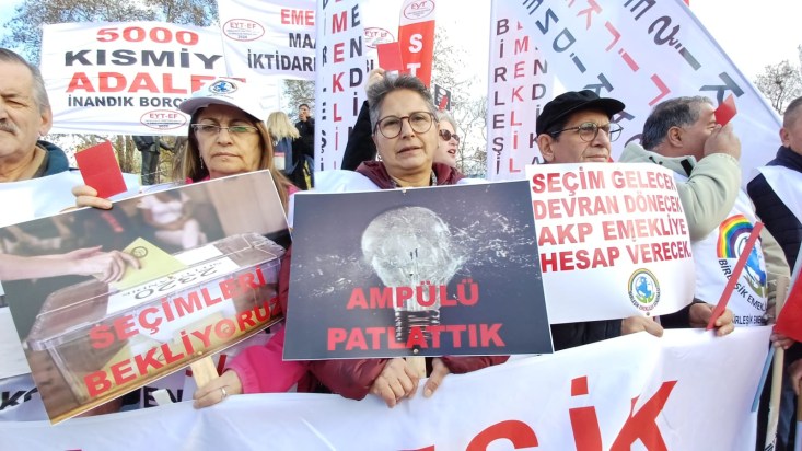 Birleşik Emekliler Sendikası ile EYT ve Emekliler Konfederasyonu üyeleri, haklarını talep etmek için Kadıköy İskele Meydanı’nda bir araya geldi. “Vur vur inlesin, hükümet dinlesin”, “Emekli insanca yaşam istiyor”, “Tencere tava hani emekliye para”, “TÜİK şaşırma sabrımızı taşırma”, “Saraya bol kepçe, emekliye yok bütçe” sloganları atan mağdurlar, “5000 prim ve kısmi emeklilik hakkımızı istiyoruz”, “Dilenci değil emekliyiz, sadaka istemiyoruz”, “ Tescil mağduruyuz”, "Yandaşa ballı kaymak, emekliye yok kaynak" dövizleri taşıdı.