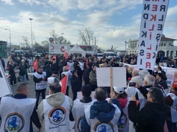 Birleşik Emekliler Sendikası ile EYT ve Emekliler Konfederasyonu üyeleri, Kadıköy İskele Meydanı’nda, insanca yaşam talebiyle iktidarı protesto etti. “Dilenci değil, emekliyiz. Sadaka istemiyoruz. Primlerimizin ve emeklerimizin karşılığını istiyoruz” diyen emekliler, “Emekli öldü, helvası kavruldu. Buyurun cenaze namazına” yazılı kutudaki helvaları yurttaşlara dağıttı.