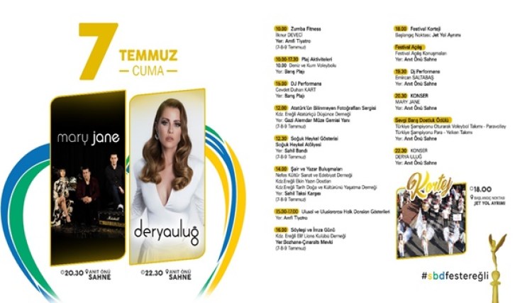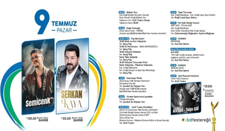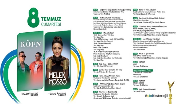 4 gün sürecek olan festivalin gündüz programlarında kültür, sanat ve spor ağırlıklı bir çok etkinlik gerçekleştirilecek. Festivalin konserler bölümünde ise Perşembe akşamı Sakiler ve Şevval Sam, Cuma akşamı Mary Jane ve Derya Uluğ, Cumartesi akşamı Köfn ve Melek Mosso, Pazar akşamı Semicenk ve Serkan Kaya sahne alacak. Ayrıca Pazar günü Cehennemağzı mağaralarında Arif Sağ ve Tolga Sağ konser verecek.