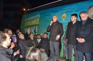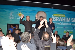 “Ak Parti Belediyesi olan Zonguldak Belediyesi yatırımlarda büyük bir atılım yaptı. Bakanlar ile hükümet ile ele ele vererek Zonguldak aldı başını gidiyor. Bunu da 31 Mart sonrası gerçek hizmeti Ereğli’mize taşıyacağız. Ereğli’mizin şahlanışına şahitlik edeceğiz. “