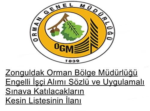 Zonguldak Orman Bölge Müdürlüğü Engelli İşçi Alımı Sözlü ve Uygulamalı Sınava Katılacakların Kesin Listesinin İlanı.