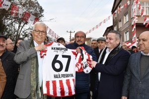 Başkan Posbıyık’ın açıklamasının ardından iş insanı Akın Katı, Akınspor formasını Başkan Halil Posbıyık ve eşi Neriman Posbıyık’a hediye etti, daha sonra seçim bürosunun açılışı yapıldı.