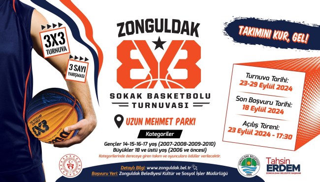 '' Kültür ve Sosyal İşler Müdürlüğümüz tarafından organize edilen 'Zonguldak 3x3 Sokak Basketbolu Turnuvası' heyecanı başlıyor. Büyük çekişmelerin ve kıran kırana mücadelelerin sahne alacağı turnuvanın sonunda dereceye giren takım ve oyuncuları çeşitli ödüller bekliyor.