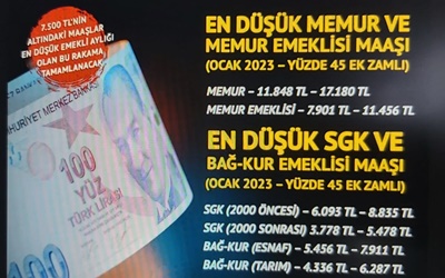 7.500-10.000 TL arasında maaş alanlara yüzde 45, 10.000-15.000 arasına yüzde 40, 15.000-20.000 arasına yüzde 35 ve 20.000 TL üzerindekilere ise yüzde 30 zam formülü dikkat çekiyor. Öte yandan Temmuz’da en düşük emekli maaşının da yükseltilmesi söz konusu.''