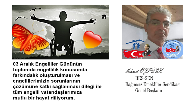 (BES-SEN) Bağımsız Emekliler Sendikası'nın 3 Aralık Engelliler günü mesajı;