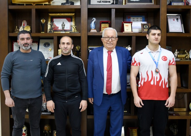 Antrenörü Muhammed Yaşa ve kendisini destekleyen sponsoru Musa Günce ile Başkan Posbıyık’ı ziyaret eden Yusuf Eren Yılmaz altın madalyayı Ereğli’ye getirdiği için mutlu olduğunu belirtti.