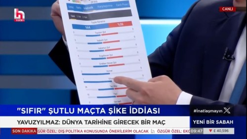 “TFF bu maçtan başlayarak artık bir şeyleri düzeltmek zorunda. TFF tıpkı YSK gibi bağımsız bir otorite. Ankaraspor – Nazillispor maçı Guinness Dünya Rekorları Kitabına girebilecek bir maç. Bir maç neden oynanır? Gol atmak için oynanır. Ama hiç şut atmasan zaten gol olmaz. Hiç şut atılmaması demek zaten zımnen bir anlaşma yapıldığını bize gösteriyor. Bakın iki takım arasındaki maçta toplam isabetli şut sıfır, isabetsiz şut sıfır, engellen şutta sıfır çünkü toplam şut sıfır. Tüm bunlar göz göre göre yapılıyor.