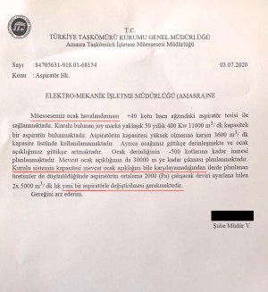 İşte, ocaktaki havalandırmanın yetersiz olduğunu gösteren belge!