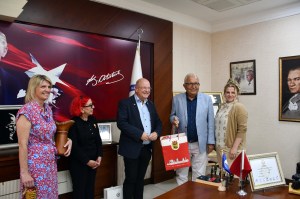 Almanya’nın Düren şehriyle kardeş kent ilişkilerini geliştirme çabaları devam ediyor. Düren’de açılan Kdz. Ereğli Meydanı’nın ardından bugün Ereğli sahilinde açılacak Düren Kent Parkı açılışı için Düren Belediye Başkanı Frank Peter Ullrich, Belediye Başkanı Eşi Iris Ullrich, Belediye Başkanı Özel Kalemi Mr. Sebastian Eich, Belediye Basın Danışmanı Mr. Dirk Zirke, Yeşiller Partisi Meclis Üyesi Nermin Ermiş ve Kardeş Şehir Temsilcisi Sabine Kieven Kdz. Ereğli’ye gelerek Belediye Başkanı Halil Posbıyık’ı makamında ziyaret ettiler.