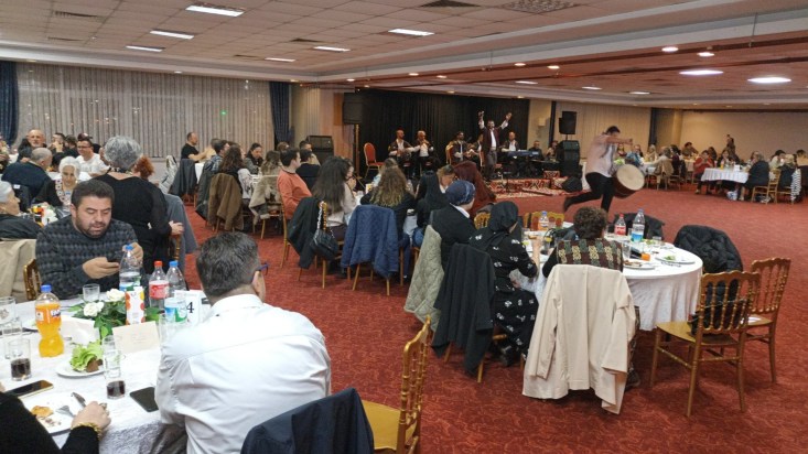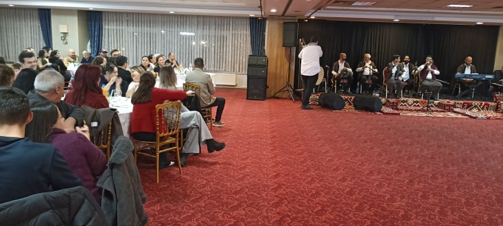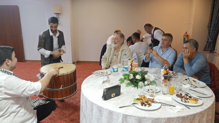 Sevilen ses sanatçısı İbrahim Gözükara ve ekibi unutulmaz bir geceye imza attı. Yöresel türkülerle geceye damga vuran Gözükara, davetlilere duygusal ve neşeli anlar yaşattı. Yoğun katılımın olduğu gecede, İbrahim Gözükara ve ekibi; “Urfalı Sevmiş”, “Dost Değil”, “Urfa’nın Etrafı Dumanlı Dağlar” ve Merdo” gibi halk müziğinin sevilen eserlerini canlı olarak seslendirdi. Katılımcılar, sıra gecesinin geleneksel atmosferinde eğlenceli bir akşam geçirirken, çiğ köfte ve ikramlar eşliğinde dinlenen türküler, salonda coşkulu alkışlarla karşılandı. Alevli davul gösterisi ise görülmeye değerdi.