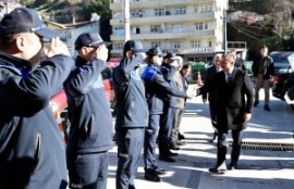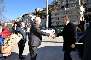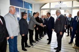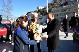 Zabıta Karşılama Mangası eşliğinde beraberinde belediye başkan yardımcıları, belediye meclis üyeleri ve daire müdürleriyle birlikte belediye girişinde çiçekle karşıladı. Başkanlık makamında bir süre devam eden ziyarette İlçe Kaymakamı Mehmet Yapıcı, Emniyet Müdürü Hasan Ünlü ve Jandarma Komutanı Ali Akça’da yer aldı.