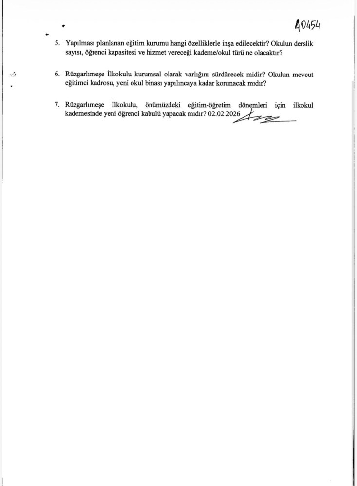 Ayrıca önergemizde yer alan; okulun yapısal risklerinin ne zamandır bilindiği, neden eğitim-öğretim yılı ortasında apar topar tahliye kararı alındığı, öğrenci, veli ve öğretmenlerin yaşadığı mağduriyetleri azaltmak için hangi önlemlerin alındığı ve yeni okulun kapasitesinin ne olacağına ilişkin kritik sorular da yanıtsız bırakılmıştır.