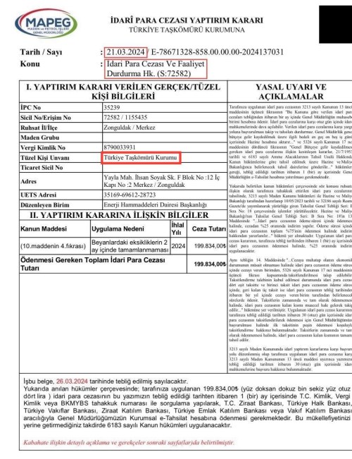 21.03 2024’te Türkiye Taşkömürü Kurumuna bağlı Armutçuk yeraltı maden ocağında; İş güvenliği tehlikeleri nedeniyle MAPEG’in faaliyet durdurma kararı aldığını tespit ettik.