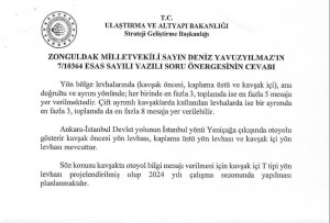 Yavuzyılmaz önergesinde, söz konusu kavşağa T tipi levha konulması, levhanın Yeniçağa, Bolu, İstanbul istikametini gösteren kısmına, Ankara istikametinin ve Anadolu E90 Otoyolu bağlantı bilgilerinin eklenmesini talebinde bulunurken, Bakanlık milletvekilinin talebine yanıt verdi.