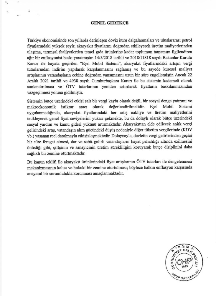 “AKP, dünyadaki savaşları gerekçe göstererek devasa akaryakıt zamları yapmaya hazırlanıyor. Oysa ülkemizde benzin ve motorin fiyatlarının, küresel dalgalanmalar karşısında zamlanmadan sabit tutulması gerekiyor. 16 Ocak 2026’da Meclis’e sunduğum kanun teklifiyle, Eşel Mobil Sistemine geçilmesi durumunda akaryakıt pompa fiyatlarının yaklaşık yüzde 20’sini oluşturan ÖTV’nin azaltılıp artırılması yoluyla uluslararası petrol fiyatlarındaki değişimlerin dengelenmesini mümkün kılıyoruz. Petrol fiyatları arttığında ÖTV azaltılacak, fiyatlar düştüğünde ise ÖTV artırılarak pompa fiyatları sabit tutulabilecek.
