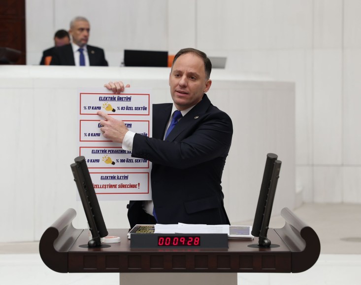 AK Parti’nin enerji politikası yolsuzluk, usulsüzlük ve kamu zararlarıyla dolu enerji politikası nedeniyle Türkiye'deki elektrik üretiminin yüzde 83'ünü özel şirketler, sadece yüzde 17'sini kamu yapıyor. Elektrik dağıtımının yüzde 100'ünü özel şirketler yapıyor. Elektrik perakende satışının yüzde 100'ünü yine aynı özel şirketler yapıyor. Geriye bir tek elektrik iletim sistemi kalıyor, o da özelleştirme sürecinde. Ayrıca 81 ilden 41'inin doğal gaz dağıtım işini de sadece 2 şirkete verilmiş durumda yani AK PARTİ eliyle bazı özel şirketler enerji alanında âdeta kartel olmuş durumda. Şimdi de Çayırhan Termik Santrali'ni satmak, maden sahalarının işletme hakkını 2060 yılına kadar devretmek istiyorlar. "Kâr mı etti, zarar mı etti?" demeden; tesislerin, lojmanların, arsaların kıymet takdirini bile yapmadan, yangından mal kaçırır gibi adrese teslim ihaleyle bu tesisleri yandaş şirketlere peşkeş çekmek istiyorsunuz. İşçi sizin oyuncağınız değil, kandırmayın, geleceğiyle oynamayın; bu ihaleyi tümüyle iptal edin!