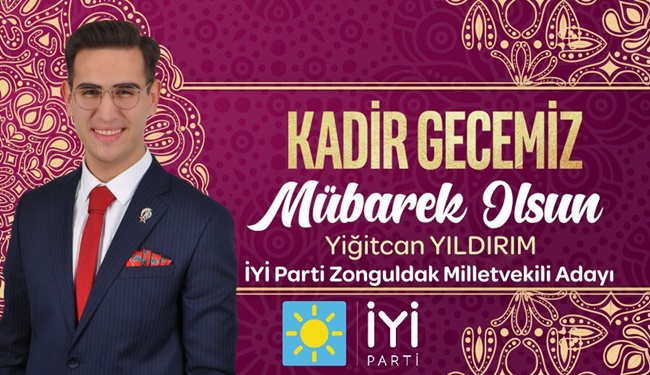 İYİ Parti 4. Sıra Zonguldak Milletvekili Adayı Yiğitcan YILDIRIM'ın kutlama mesajı. ''Kadir gecemiz mübarek olsun''
