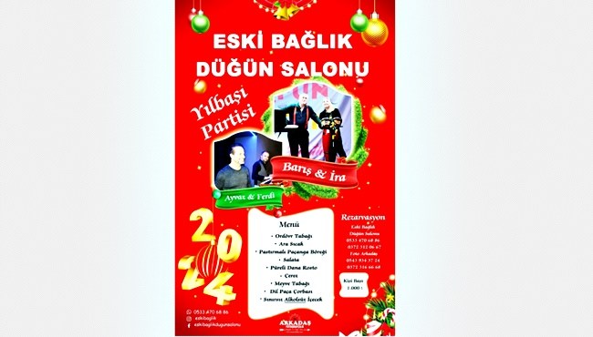 Karadeniz Ereğli ilçesinde, yeni yıl partilerinden biri Eski Bağlık Düğün Salonu’nda gerçekleştirilecek. Sizde, aileniz, arkadaşlarınız ve dostlarınızla 2024'e içeriği dolu bu organizasyonla girebilirsiniz.