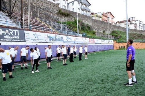 Şehit Vefa Karakurdu stadında Belediyespor Alt Yapı hocalarının da eşlik ettiği ilk antrenmana Zabıta Müdürü Halit Aydın, Zabıta Amir ve komiserleri, zabıta memurları ve destek personeli katıldı.