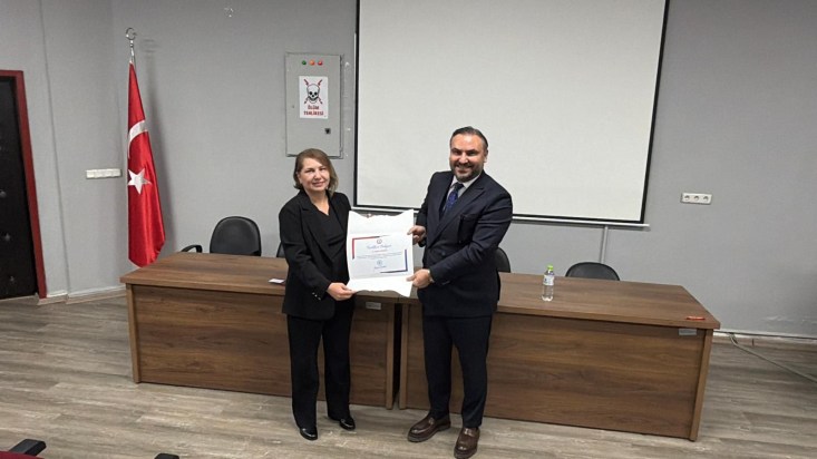 Program sonunda, İTÜ Bölüm Başkanı Prof. Dr. Feride Öztürk, eğitime ve gençlere yönelik katkılarından dolayı ZONSİAD Başkanı ve Elcab Kablo Yönetim Kurulu Başkanı Nejdet Tıskaoğlu’na plaket takdim etti.