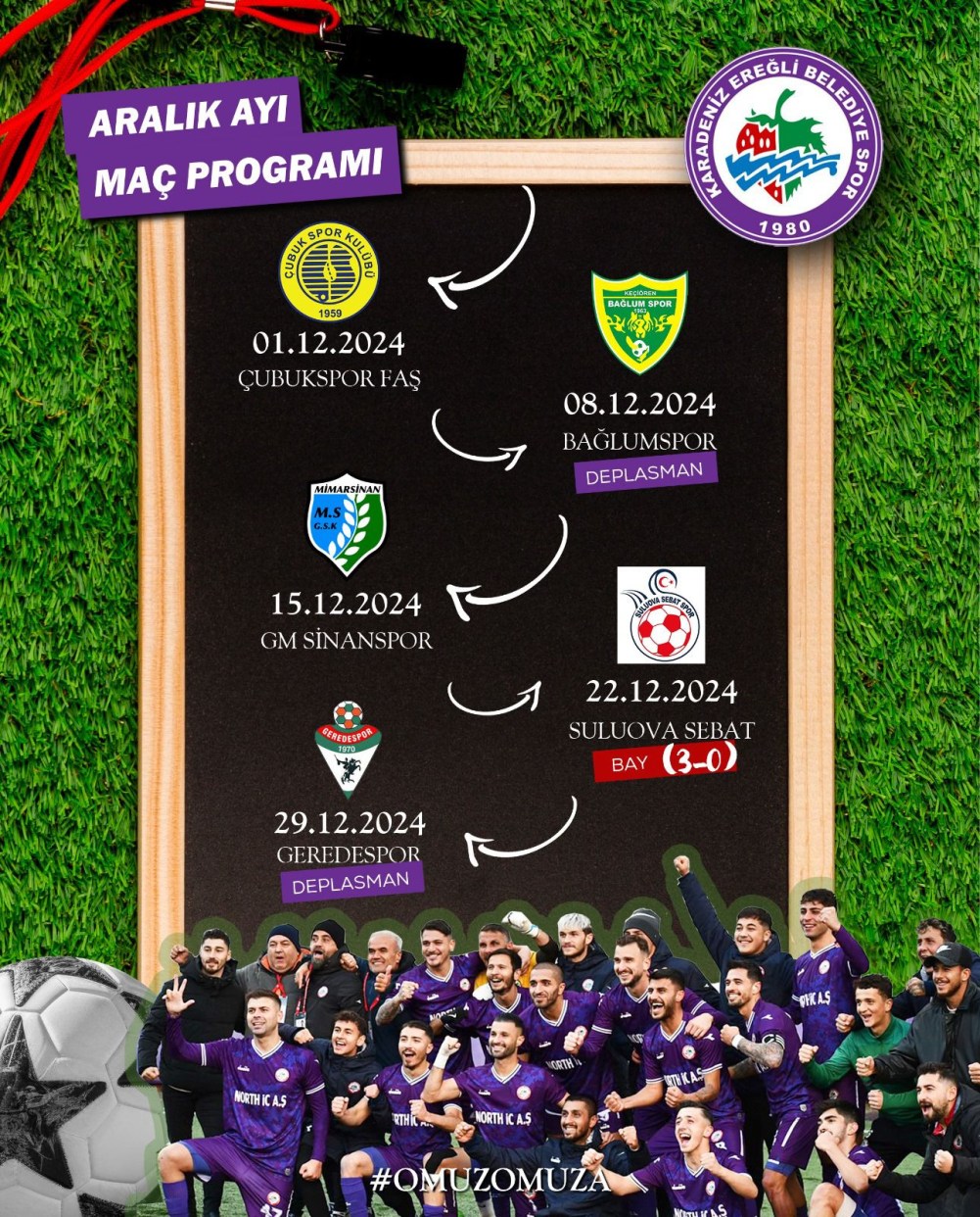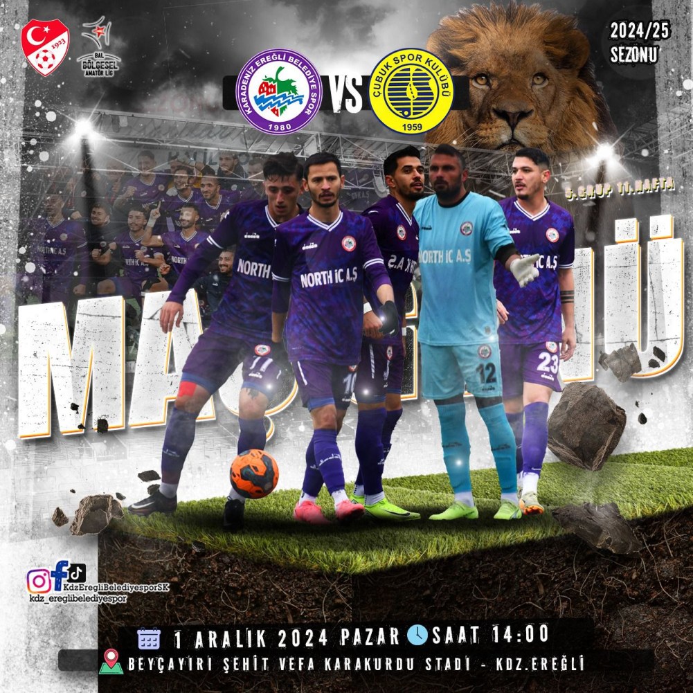 Kdz.Ereğli Belediyespor, 11. Hafta karşılaşmasında, 1 Aralık Pazar Günü Şehit Vefa Karakurdu (Beyçayırı) Stadı’nda Çubuk Spor ile karşılaşıyor.